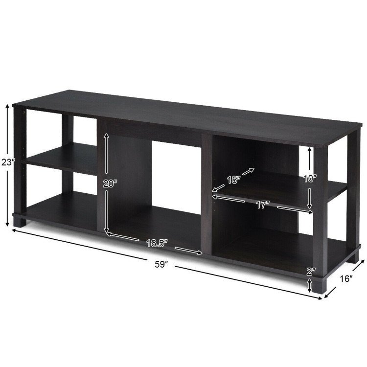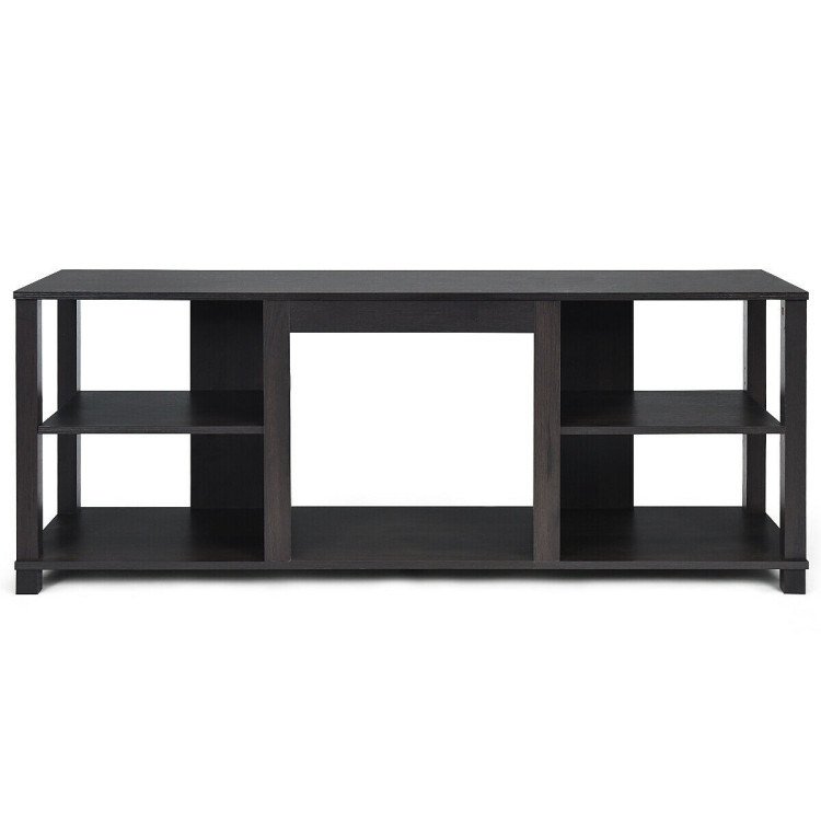 1.Adjustable Shelves: The TV stand has 2 opening shelves at each side and its middle shelf is adjustable. There are 5 adjustable positions to meet your daily demand for storing a range of different heights. You can store audio-video equipment or simply use the shelves to display books and pottery