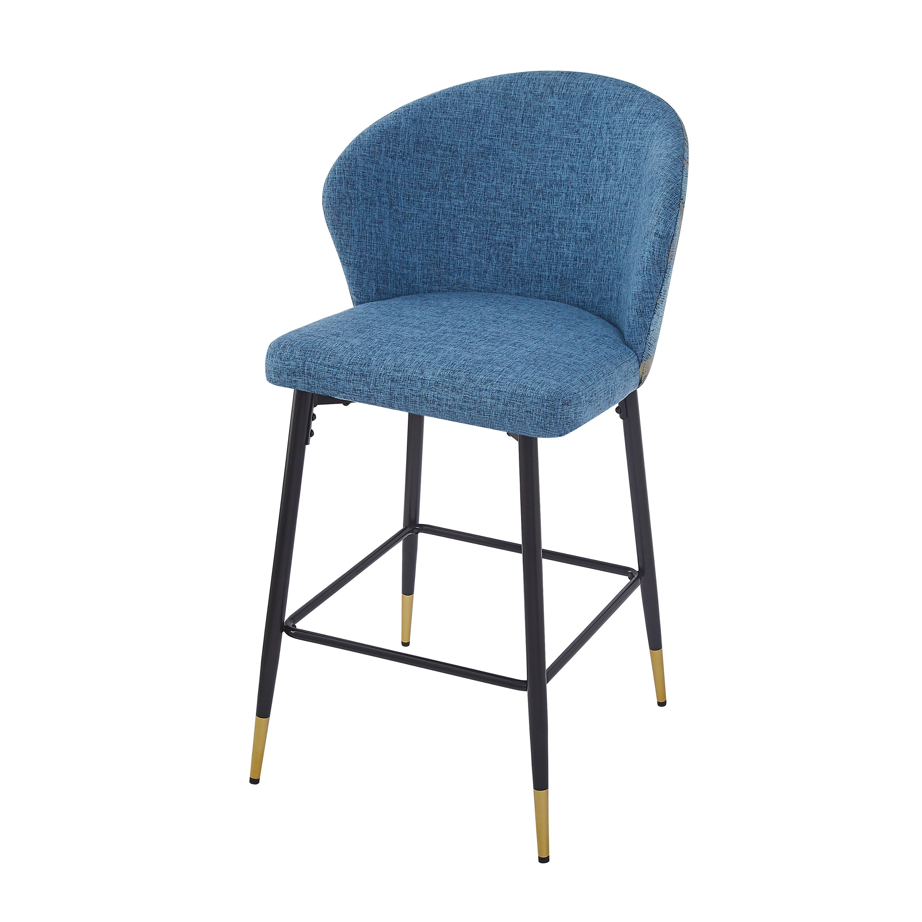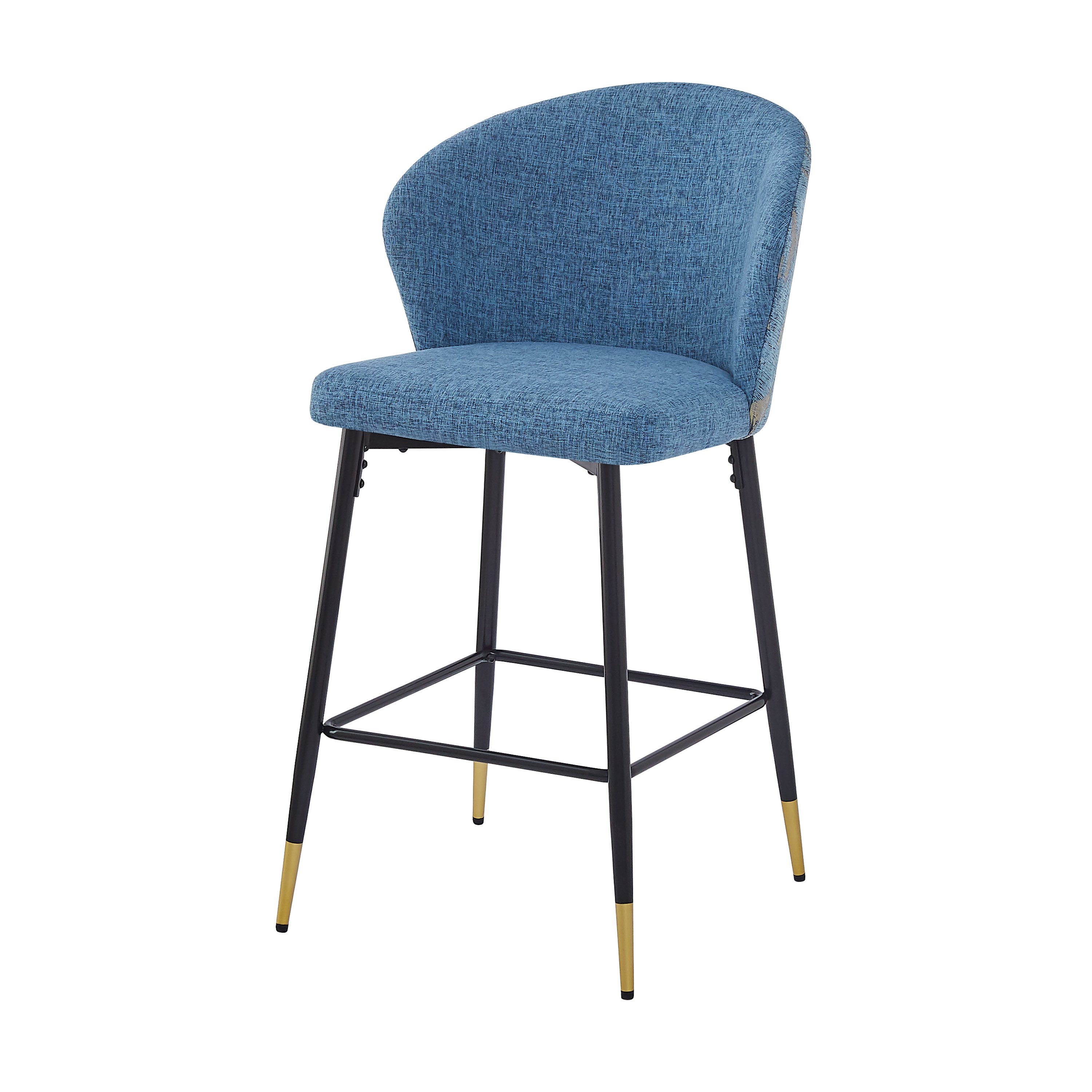 | Highlights | Metal Frame // Black&Golden Footrests // Blue&Golden Jacquard Cover // Breathable // Foam-Filled // 28inch Counter Height // Set of 2 // Plastic Glides Foot Pad // Curved Back // Modern Style // For Kitchen &Dining // 265lbs Weight Capcaity // Easy to Installation (10min/pc/person) |