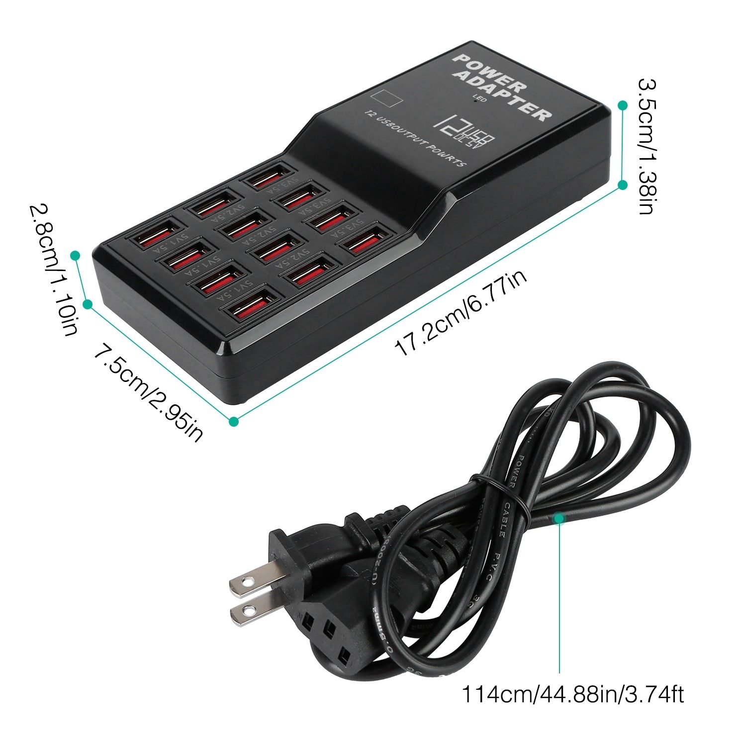** 12-Port Simultaneous Charging*:The USB charger station can support up to 12 devices to charge at the same time. Never need to wait in line to juice up your electronic devices.