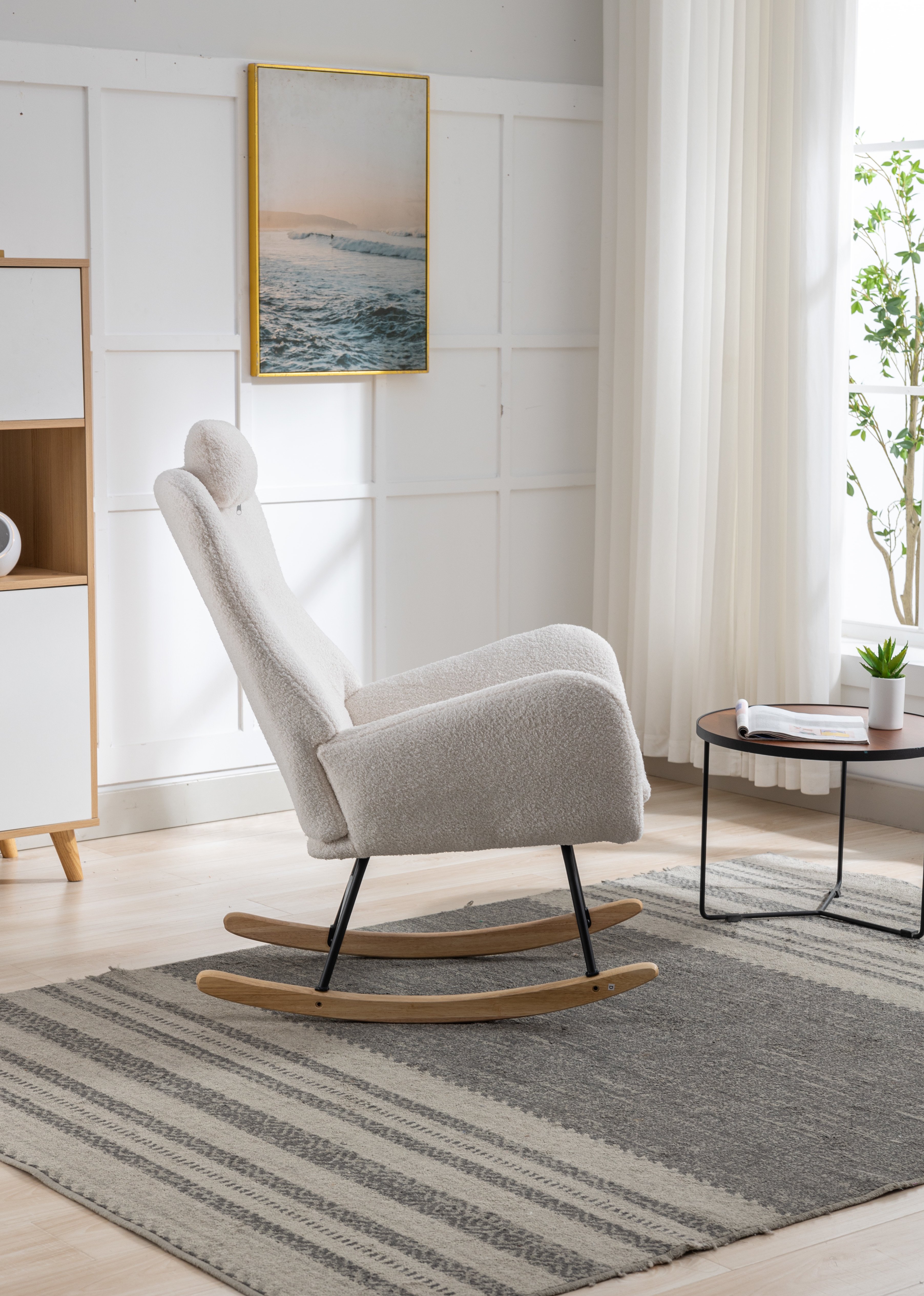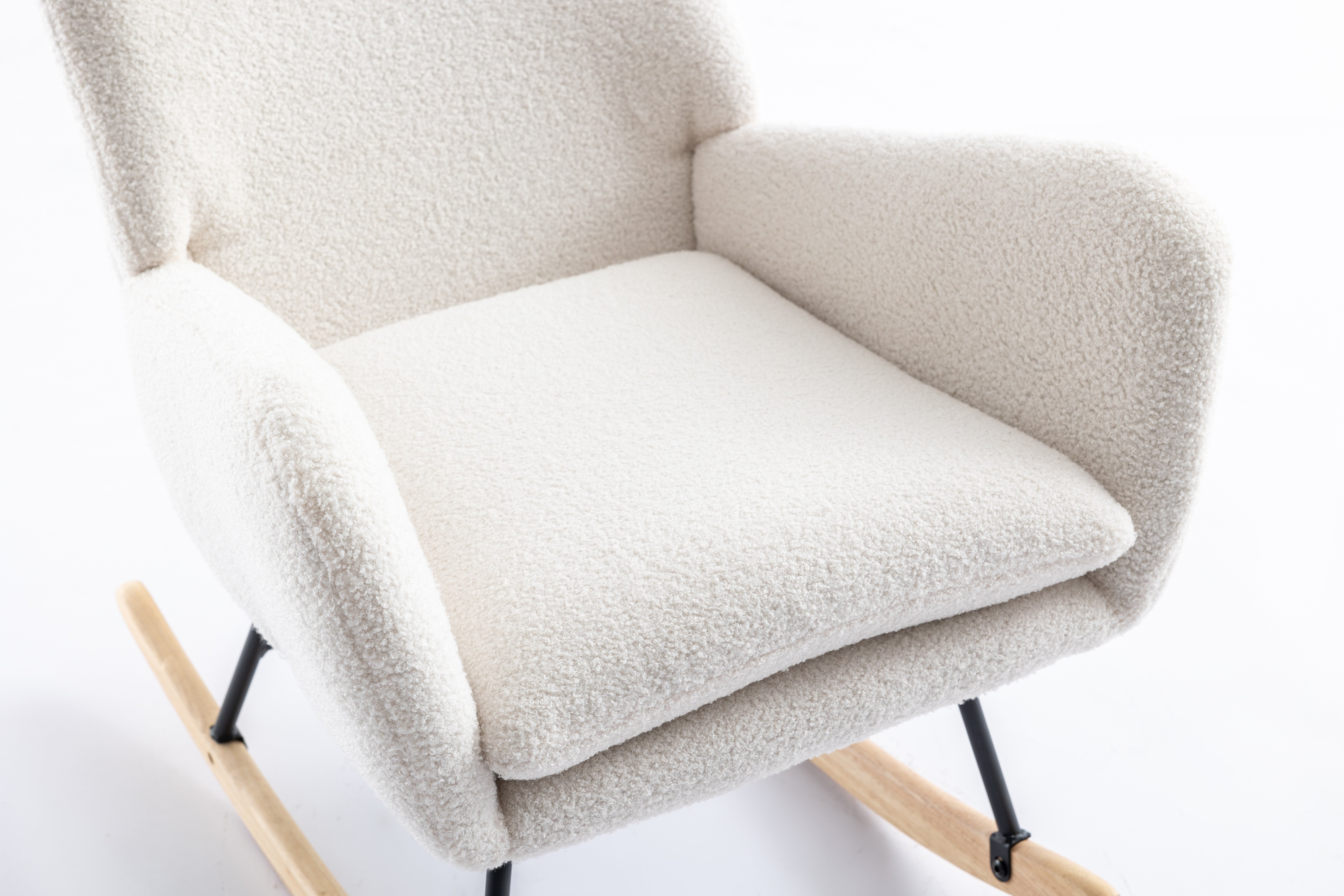[High-quality]: The solid wood bottom and metal frame provide stable support for the rocking chair nursery recliner. With the safe bottom tilt design, both adults and children can enjoy the fun and leisure time brought by the rocking chair indoor. It is suitable for the living room, bedroom, nursery, porch, office.
