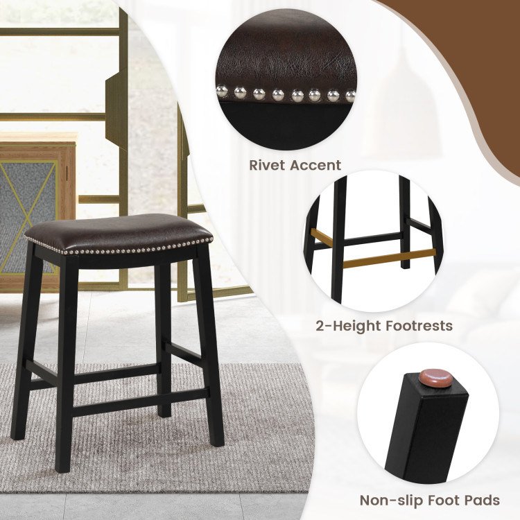 2.Built-to-last Wood Frame: Crafted with high-quality rubber wood and acacia wood, the saddle seat bar stool set offers maximum durability and stability, ensuring large capacity up to 330 lbs and long-lasting use for years to come.