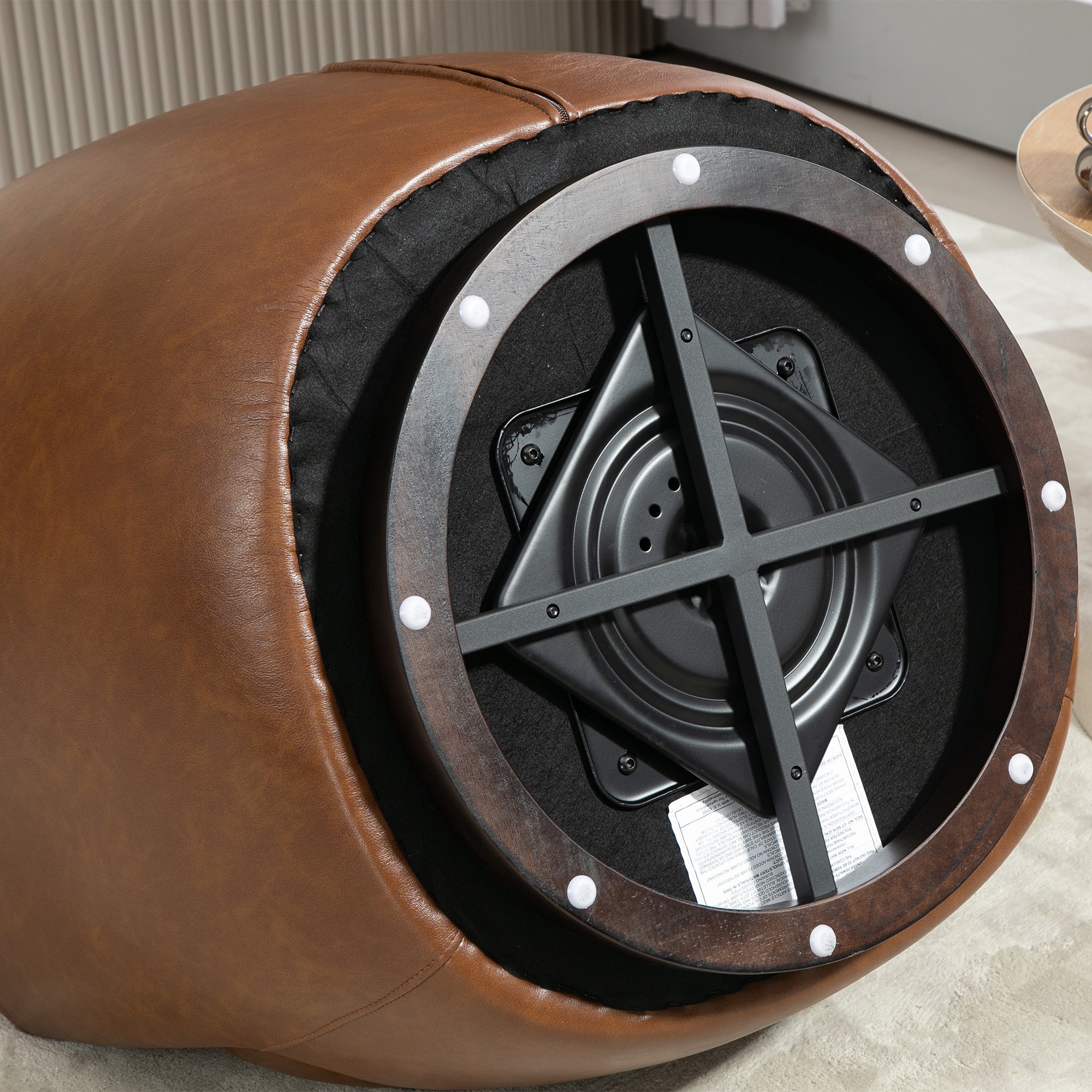 Upholstered Swivel Barrel Armchair with Storage Modern Living Room Side Chair for Bedroom/Office/Reading Spaces - PU Light Brown