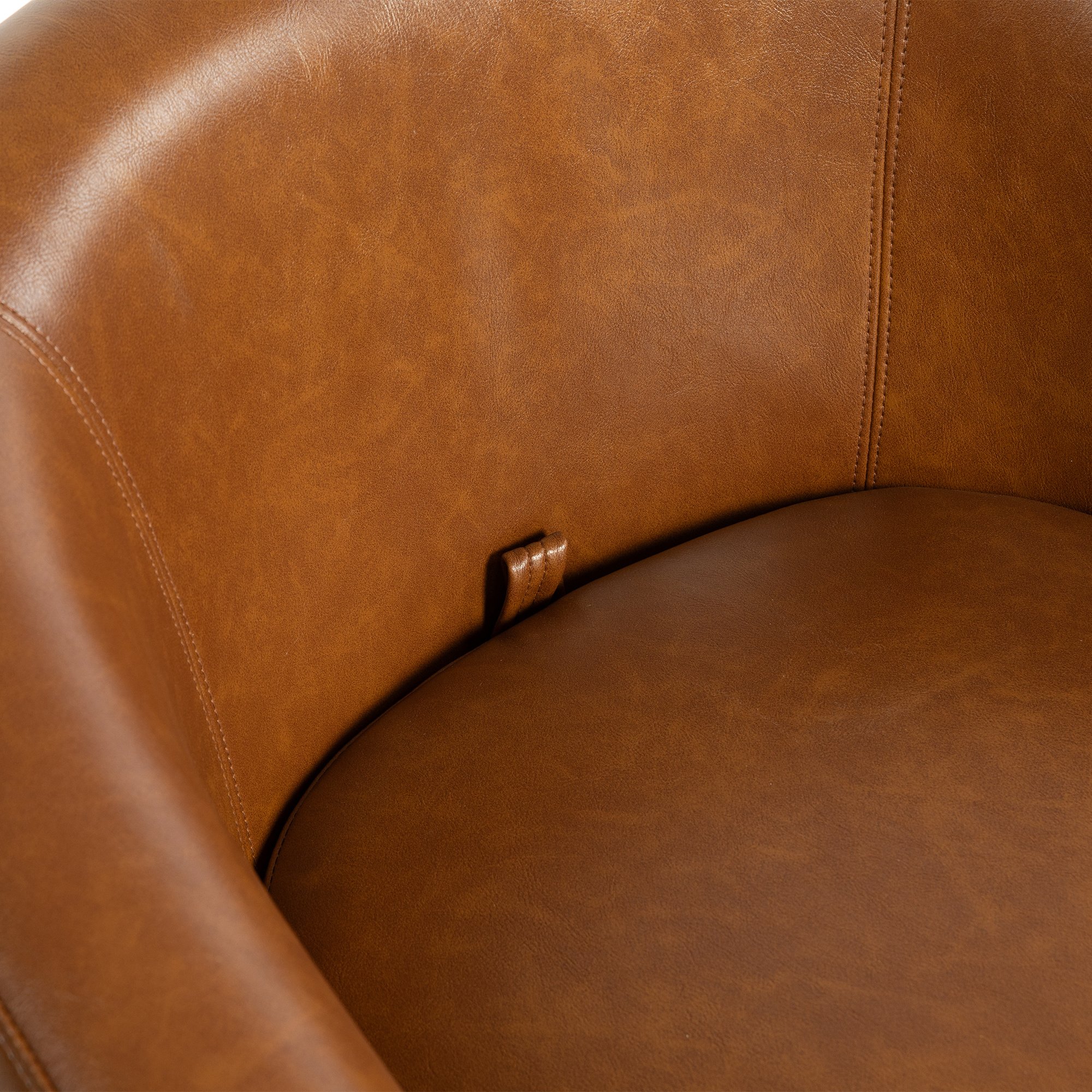 Home > Upholstered Swivel Barrel Armchair with Storage Modern Living Room Side Chair for Bedroom/Office/Reading Spaces - PU Light Brown