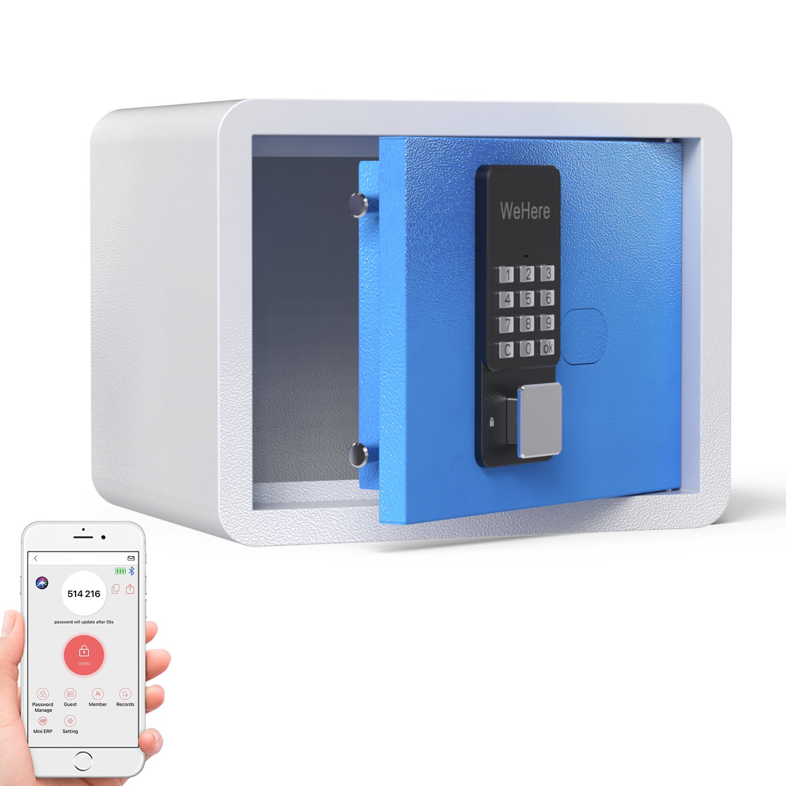 [APP FUNCTION] 1, Owner can add members and granting them various permissions. 2, Set password or get One time password, Bluetooth unlocking, Remote unlock or remote set password (requires purchase WeHere W100 Bridge). 3, Check members unlock history. 4, Registration of keys usage.